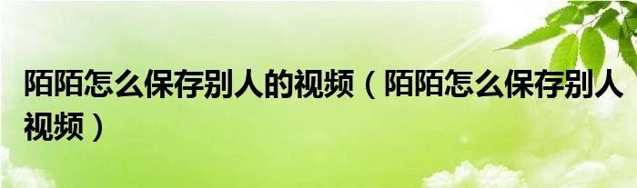 大家好,小晋来为大家解答以下问题,关于陌陌怎么保存别人的视频,陌陌怎么保存别人视频很多人还不知道,今天让我们一起来看看吧!