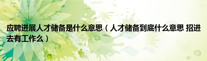 应聘进展人才储备是什么意思(人才储备到底什么意思 招进去有工作么)