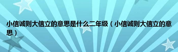 大家好,小晋来为大家解答以下问题,关于小信诚则大信立的意思是什么二年级,小信诚则大信立的意思很多人还不知道,今天让我们一起来看看吧!