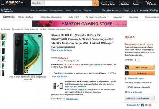 根据最新的泄密消息,小米Mi 10T和Mi 10T Pro即将推出。最后的证明是,这两款设备都在亚马逊西班牙上市了几分钟。