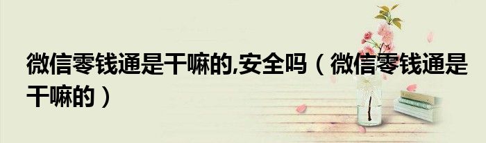 大家好,小晋来为大家解答以下问题,关于微信零钱通是干嘛的,安全吗,微信零钱通是干嘛的很多人还不知道,今天让我们一起来看看吧!