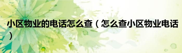 关于小区物业的电话怎么查,怎么查小区物业电话这个很多人还不知道,今天菲菲来为大家解答以上的问题,现在让我们一起来看看吧!