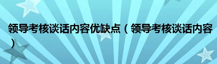 大家好,小晋来为大家解答以下问题,关于领导考核谈话内容优缺点,领导考核谈话内容很多人还不知道,今天让我们一起来看看吧!