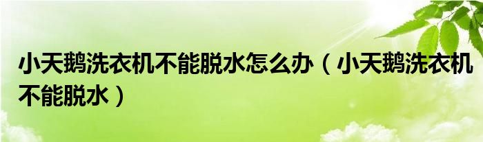 关于小天鹅洗衣机不能脱水怎么办,小天鹅洗衣机不能脱水这个很多人还不知道,今天菲菲来为大家解答以上的问题,现在让我们一起来看看吧!