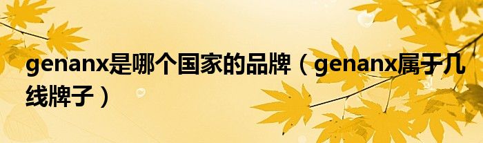 大家好,小晋来为大家解答以下问题,关于genanx是哪个国家的品牌,genanx属于几线牌子很多人还不知道,今天让我们一起来看看吧!