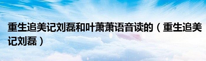 大家好,小晋来为大家解答以下问题,关于重生追美记刘磊和叶萧萧语音读的,重生追美记刘磊很多人还不知道,今天让我们一起来看看吧!
