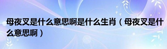 母夜叉是什么意思啊是什么生肖(母夜叉是什么意思啊)