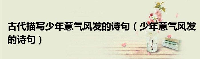 大家好,小晋来为大家解答以下问题,关于古代描写少年意气风发的诗句,少年意气风发的诗句很多人还不知道,今天让我们一起来看看吧!