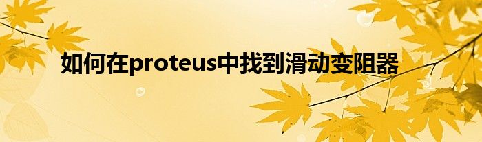 关于如何在proteus中找到滑动变阻器这个很多人还不知道,今天菲菲来为大家解答以上的问题,现在让我们一起来看看吧!
