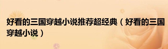 大家好,小晋来为大家解答以下问题,关于好看的三国穿越小说推荐超经典,好看的三国穿越小说很多人还不知道,今天让我们一起来看看吧!