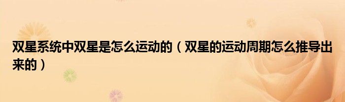 关于双星系统中双星是怎么运动的,双星的运动周期怎么推导出来的这个很多人还不知道,今天菲菲来为大家解答以上的问题,现在让我们一起来看看吧!