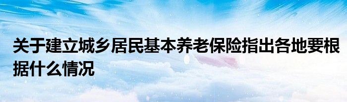 关于关于建立城乡居民基本养老保险指出各地要根据什么情况这个很多人还不知道,今天菲菲来为大家解答以上的问题,现在让我们一起来看看吧!