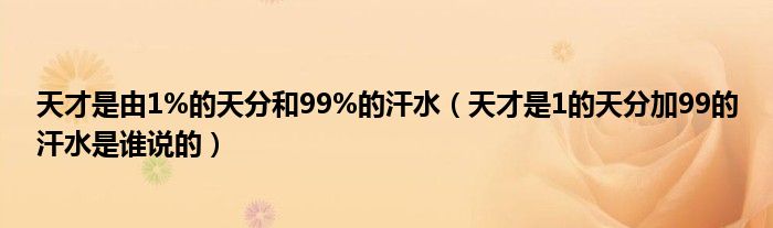 关于天才是由1%的天分和99%的汗水,天才是1的天分加99的汗水是谁说的这个很多人还不知道,今天菲菲来为大家解答以上的问题,现在让我们一起来看看吧!