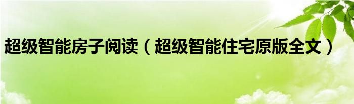 关于超级智能房子阅读,超级智能住宅原版全文这个很多人还不知道,今天菲菲来为大家解答以上的问题,现在让我们一起来看看吧!