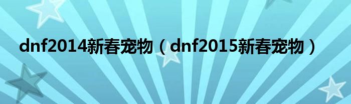 dnf2014新春宠物(dnf2015新春宠物)