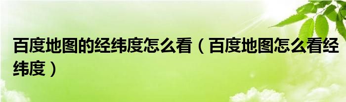 关于百度地图的经纬度怎么看,百度地图怎么看经纬度这个很多人还不知道,今天菲菲来为大家解答以上的问题,现在让我们一起来看看吧!