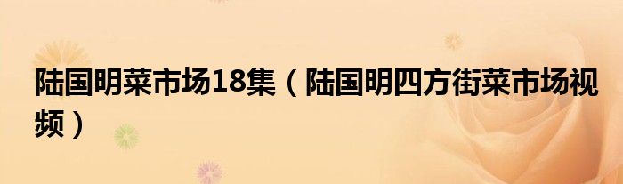 大家好,小晋来为大家解答以下问题,关于陆国明菜市场18集,陆国明四方街菜市场视频很多人还不知道,今天让我们一起来看看吧!