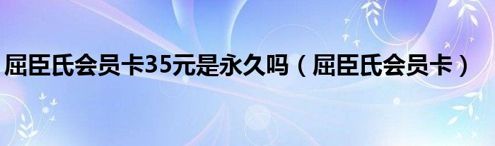 关于屈臣氏会员卡35元是永久吗,屈臣氏会员卡这个很多人还不知道,今天菲菲来为大家解答以上的问题,现在让我们一起来看看吧!