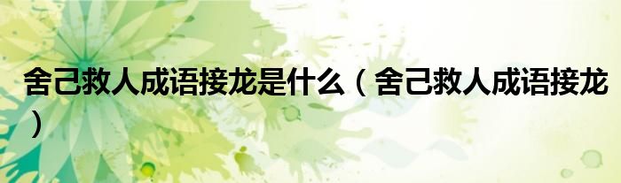 大家好,小晋来为大家解答以下问题,关于舍己救人成语接龙是什么,舍己救人成语接龙很多人还不知道,今天让我们一起来看看吧!