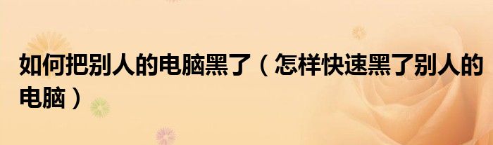 大家好,小晋来为大家解答以下问题,关于如何把别人的电脑黑了,怎样快速黑了别人的电脑很多人还不知道,今天让我们一起来看看吧!