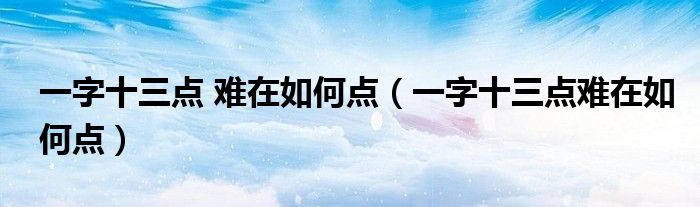 大家好,小晋来为大家解答以下问题,关于一字十三点 难在如何点,一字十三点难在如何点很多人还不知道,今天让我们一起来看看吧!