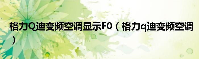 大家好,来宝来为大家解答以下问题,格力Q迪变频空调显示F0,格力q迪变频空调很多人还不知道,今天让我们一起来看看吧!