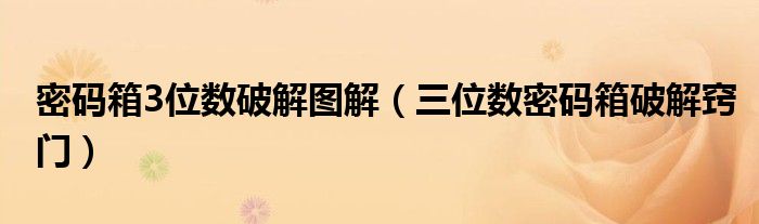 大家好,小晋来为大家解答以下问题,关于密码箱3位数破解图解,三位数密码箱破解窍门很多人还不知道,今天让我们一起来看看吧!