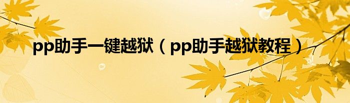 大家好,来宝来为大家解答以下问题,pp助手一键越狱,pp助手越狱教程很多人还不知道,今天让我们一起来看看吧!