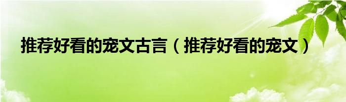关于推荐好看的宠文古言,推荐好看的宠文这个很多人还不知道,今天菲菲来为大家解答以上的问题,现在让我们一起来看看吧!
