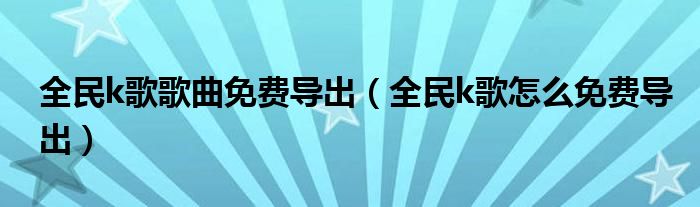 大家好,小晋来为大家解答以下问题,关于全民k歌歌曲免费导出,全民k歌怎么免费导出很多人还不知道,今天让我们一起来看看吧!