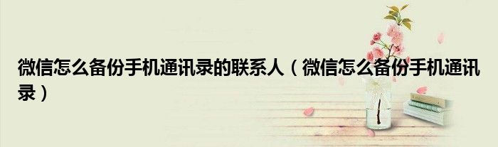 微信怎么备份手机通讯录的联系人(微信怎么备份手机通讯录)