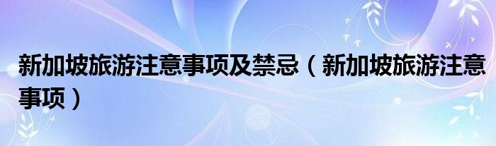 大家好,小晋来为大家解答以下问题,关于新加坡旅游注意事项及禁忌,新加坡旅游注意事项很多人还不知道,今天让我们一起来看看吧!