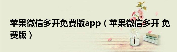 苹果微信多开免费版app(苹果微信多开 免费版)