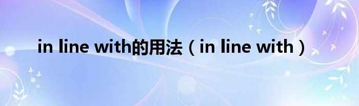 关于in line with的用法,in line with这个很多人还不知道,今天菲菲来为大家解答以上的问题,现在让我们一起来看看吧!