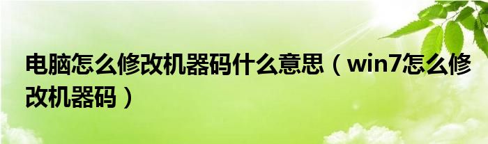 关于电脑怎么修改机器码什么意思,win7怎么修改机器码这个很多人还不知道,今天菲菲来为大家解答以上的问题,现在让我们一起来看看吧!