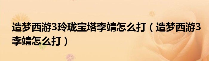 关于造梦西游3玲珑宝塔李靖怎么打,造梦西游3李靖怎么打这个很多人还不知道,今天菲菲来为大家解答以上的问题,现在让我们一起来看看吧!