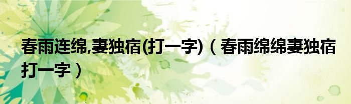 春雨连绵,妻独宿(打一字)(春雨绵绵妻独宿打一字)
