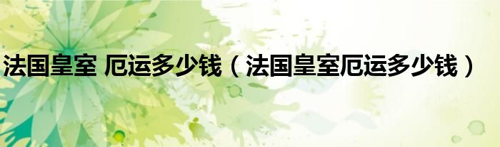 关于法国皇室 厄运多少钱,法国皇室厄运多少钱这个很多人还不知道,今天菲菲来为大家解答以上的问题,现在让我们一起来看看吧!