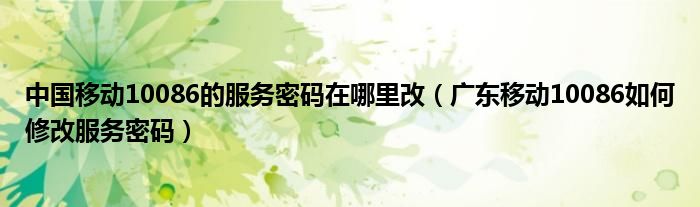关于中国移动10086的服务密码在哪里改,广东移动10086如何修改服务密码这个很多人还不知道,今天菲菲来为大家解答以上的问题,现在让我们一起来看看吧!