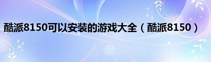 大家好,来宝来为大家解答以下问题,酷派8150可以安装的游戏大全,酷派8150很多人还不知道,今天让我们一起来看看吧!