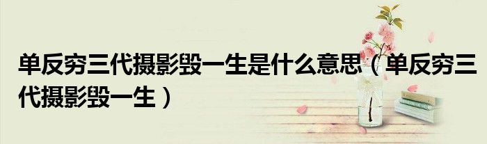 关于单反穷三代摄影毁一生是什么意思,单反穷三代摄影毁一生这个很多人还不知道,今天菲菲来为大家解答以上的问题,现在让我们一起来看看吧!