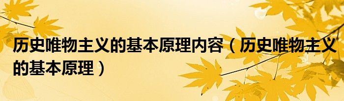 关于历史唯物主义的基本原理内容,历史唯物主义的基本原理这个很多人还不知道,今天菲菲来为大家解答以上的问题,现在让我们一起来看看吧!