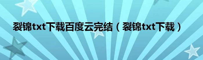关于裂锦txt下载百度云完结,裂锦txt下载这个很多人还不知道,今天菲菲来为大家解答以上的问题,现在让我们一起来看看吧!