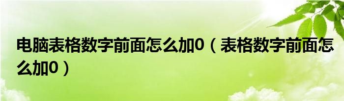 电脑表格数字前面怎么加0(表格数字前面怎么加0)