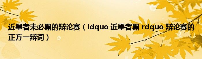 关于近墨者未必黑的辩论赛,ldquo 近墨者黑 rdquo 辩论赛的正方一辩词这个很多人还不知道,今天菲菲来为大家解答以上的问题,现在让我们一起来看看吧!