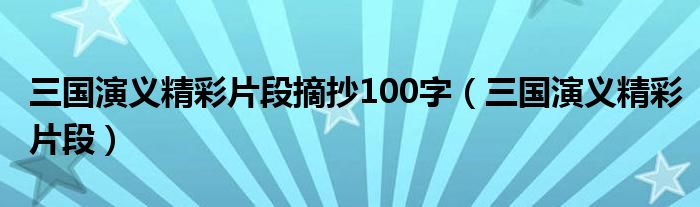 关于三国演义精彩片段摘抄100字,三国演义精彩片段这个很多人还不知道,今天菲菲来为大家解答以上的问题,现在让我们一起来看看吧!