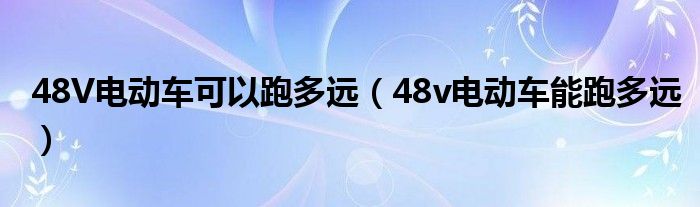 关于48V电动车可以跑多远,48v电动车能跑多远这个很多人还不知道,今天菲菲来为大家解答以上的问题,现在让我们一起来看看吧!