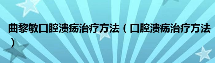 关于曲黎敏口腔溃疡治疗方法,口腔溃疡治疗方法这个很多人还不知道,今天菲菲来为大家解答以上的问题,现在让我们一起来看看吧!