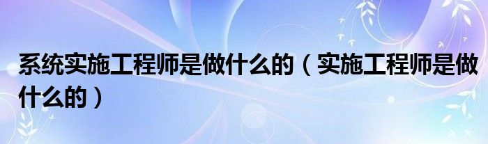 关于系统实施工程师是做什么的,实施工程师是做什么的这个很多人还不知道,今天菲菲来为大家解答以上的问题,现在让我们一起来看看吧!