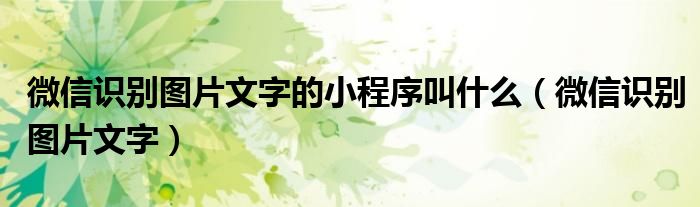 大家好,小晋来为大家解答以下问题,关于微信识别图片文字的小程序叫什么,微信识别图片文字很多人还不知道,今天让我们一起来看看吧!